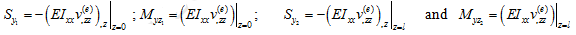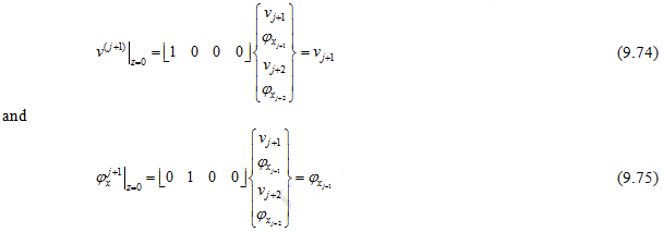 Now the translational and rotational displacements at node ( j +1) of ( j +1)th element (i.e., at z = 0) can be written, from above equation, as