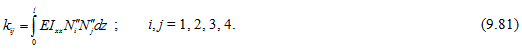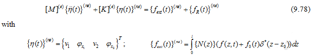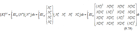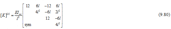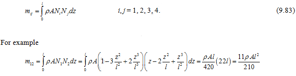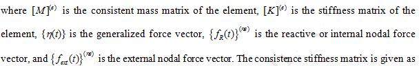 It should be noted that both the mass and stiffness matrices are symmetric. For the present formulation, we neglected the rotary inertia while deriving the equation of motion of a continuous beam. The rotary inertia terms appeared in above elemental mass matrix (corresponding to even rows and even columns) is due to consideration of element as a whole and its equivalent effects at nodes. Damping has not been considered at present in subsequent sections the Raleigh's (or proportionate) damping will be discussed.