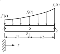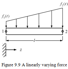 For such a linear force distribution over the element, at least two nodes are required on an element and corresponding force values f1 (t) and f2(t) must be specified, i.e.