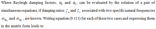 and are the system fundamental and highest natural frequencies of interest. For most of the engineering structures the damping ratio is of the order of 0.01. However, it is advisable to estimate experimentally the modal damping ratios for relevant modes from the real system.