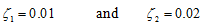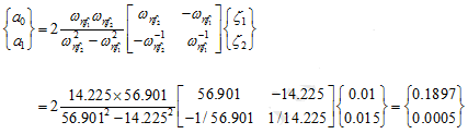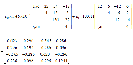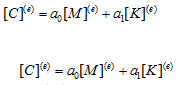 Example 9.9 For Example 9.2 obtain the Raleigh's damping coefficients considering the first two natural frequencies, and for damping ratios of 0.01 and 0.015 for the first and second natural modes, respectively. Obtain the damping matrix for the first element by using these damping coefficients.
