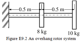 Exercise 9.2 Find transverse natural frequencies of the rotor system shown in Figure E9.2. Take EI = 2 MN-m2 for the shaft and the mass moment of inertia of the disc is negligible.