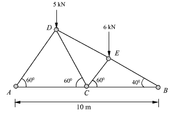 3. The truss structure shown in the figure is supported on a pin joint at A and at a roller support on B. Find out the forces in all the members.