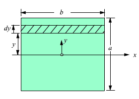 Consider an element strip of width dy at a distance y from x-axis as shown.