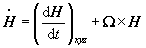 This equation is valid if the angular momentum H and moment M both are taken about fixed point O or mass center or a point which is moving towards or away from the center of mass. When H is expressed in terms of components measured relative to a moving coordinatre system,