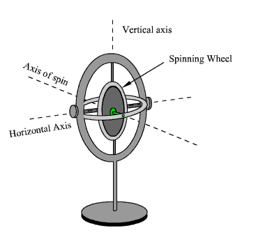 Once we spin a gyroscope, its axle wants to keep rotating in the same direction. If we mount a gyroscope in a set of gimbles, so that it can continue pointing in the same direction, it can be used as a gyrocompass.
