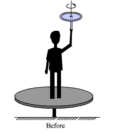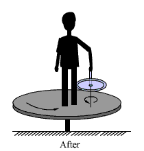 Two different situations are shown in the above figure. As shown in the right figure, the stool will start rotating in the counterclockwise direction. This can be argued as follows.