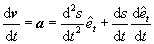 where represents the speed along the path and is the unit vector tangent to the path. The acceleration becomes
