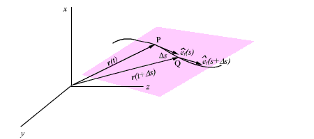 In the above figure, the plane containing the unit tangents at P and Q will become an osculating plane as