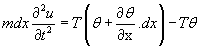 Here m is the mass per unit length of the string. Now assuring small deflections u and slope q , the equation 10.1 reduces to following equation.