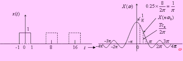 Figure 11.25. Comparison between spectra for a square wave and square pulse.