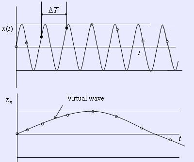Figure 11.21 Aliasing effect (top) Actual signal (bottom) Virtual signal