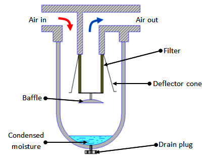 These filters are used to remove the water vapors or solid contaminants present in the pneumatic systems main lines. These filters are discussed in detail as follows.