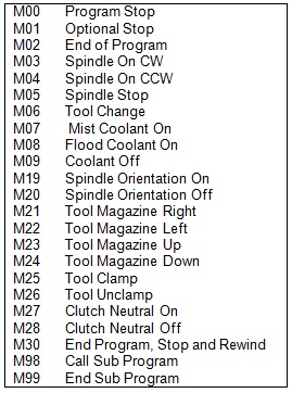 Table 7.1.2 M code for Milling operations