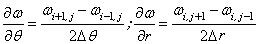 Considering a curvilinear grid as shown in Figure 26.2, the derivatives of steam function or vorticity can be replaced by their discrete (central difference) forms as: