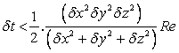 where the minimum is with respect to every cell in the mesh. Typically, is chosen equal to one-fourth to one-third of the minimum cell transit time. When the viscous diffusion terms are more important, the condition necessary to ensure stability is dictated by the restriction on the Grid-Fourier numbers, which result in