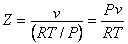 Z = (Actual volume) / (volume predicted by the ideal gas law)