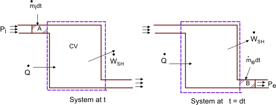 where is the mass entering the control volume during the differential time . To accommodate this, the mass inside the control volume has to be compressed such that its volume decreases by the amount . This is accomplished by the pressure acting on the material entering the control volume. Therefore, the work done =