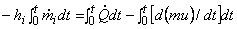 Where, denotes the mass of the gas in the control volume and u denotes the specific internal energy of the gas inside the control volume at time . It is assumed that the state of the gas at any instant of time inside the control volume is uniform. The expression above can be integrated from the start of the charging operation to the end of the charging operation , to obtain