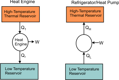 Heat engine and the refrigerator (/heat pump) can be represented as shown in Figure 16.2.