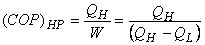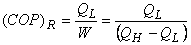 Refer to figure 16.2. Let and represents the amount of energy absorbed as heat from the low temperature reservoir and the energy rejected as heat to the high temperature reservoir respectively, Let W be the work done on the device to accomplish the task.