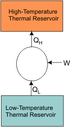 This statement tells us that it is impossible for any device, unaided by an external agency, to transfer energy as heat from a cooler body to a hotter body. Consider the case of a refrigerator or a heat pump (Figure 17.2)
