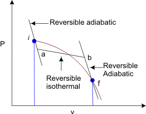 Also, these reversible adiabatic and reversible isothermal lines are such that the area under is equal to the area under .