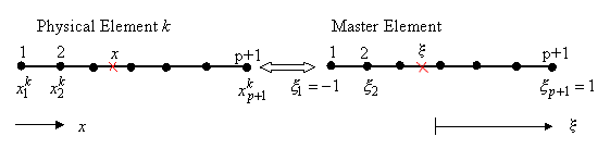 Figure 11.1 shows a mapping of a typical element k (of p th order) to the master element.