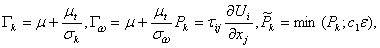 σ k1 = 2.0, σω1 = 2.0, = 0.41, γ1 = 0.5532, β1 = 0.0750, β* = 0.09, c1 = 10