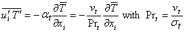 In analogy to the modelling of the turbulent stress tensor, the turbulent heat flux vector is modeled with the help of a turbulent diffusivity: