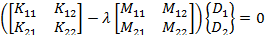 Here D1 and D2 are the master and slave degrees of freedom respectively. Lower partition is solved for D2 and is substituted into the upper partition. Thus obtaining a smaller system that has only D1 as DOF. Matrices of such a reduced system would be frequency-dependent. To obtain a frequency-independent transformation, Guyan suggested that the relation between the slaves and the masters be dictated entirely by stiffness coefficients. So, the modified stiffness and mass matrices are