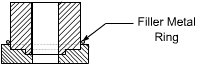 Fig 3.3: Preplaced Brazing Material and filling of joint during Brazing. Soldering: The soldering filler metal is called solder. The most commonly used solder is lead and tin alloy containing tin ranging from 5 to 70% and lead 95 to 30%. Higher the contents of tin, lower the melting point of alloy. Other filler metal are tin-antimony solder (95% tin and 5% antimony), tin-silver solder (tin 96% and silver 4%), lead-silver solder (97% lead, 1.5 tin and 1.5 silver), tin-zinc solder (91 to 30% tin and 9 to 70% zinc), cadmium-silver solder (95% cadmium and 5% silver). These are available in the form of bars, solid and flux cored wires, preforms, sheet, foil, ribbon and paste or cream. Fluxes used in soldering are ammonium chloride, zinc chloride, rosin and rosin dissolved in alcohol. Various soldering methods are soldering with soldering irons, dip soldering, torch soldering, oven soldering, resistance soldering, induction soldering, infra-red and ultrasonic soldering. Soldering iron being used for manual soldering, consists of insulated handle and end is fitted with copper tip which may be heated electrically or in coke or oil/gas fired furnace. Solder is brought to molten state by touching it to the tip of the soldering iron so that molten solder can spread to the joint surface. Ultrasonic soldering uses ultrasonics i.e. high frequency vibrations which break the oxides on the surface of workpieces and heat shall be generated due to rubbing between surfaces. This heat melts the solder and fills the joint by capillary action. Flux Residue Treatment: When brazing or soldering is completed then the flux residues are to be removed because without removal the residues may lead to corrosion of assemblies. Brazing flux residues can be removed by rinsing with hot water followed by drying. If the residue is sticky then it can be removed by thermal shock i.e. heating and quenching. Sometimes steam jet may be applied followed by wire brushing. Soldering flux residues of rosin flux can be left on the surface of joint, however, activated rosin flux and other flux residues require proper treatment. If rosin residues removal is required then alcohol, acetone or carbon tetrachloride can be used. Organic flux residues are soluble in hot water so double rising in warm water shall remove it. Residue removal of zinc chloride base fluxes can be achieved by washing first in 2% hydrochloric acid mixed in hot water followed by simple hot water rinsing. |