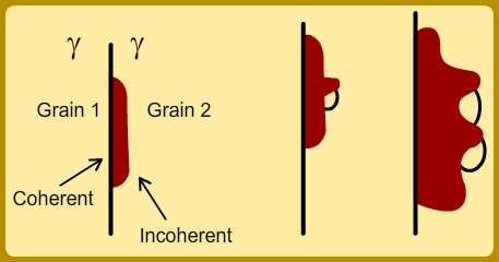 If the composition of the steel is not the eutectoid composition, then, it is possible that proeutectoid ferrite or cementite is nucleated at the grain boundary. The other phase, be it cementite or ferrite, then forms on the incoherent boundary of this proeutectoid phase. This process is shown schematically in Figure 27.