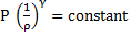 For the compressible fluid flowing under adiabatic conditions and assuming ideal gas law, the relation between P and is
