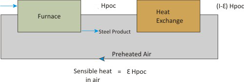 In another, we keep the amount of load constant so that heat carried by the load is Hu. Sensible heat in air will increase the temperature of the furnace, if the furnace is operated at the same fuel input (Hin) as was without preheating air. Since the temperature of the furnace should remain at , thus fuel input has to be reduced such that