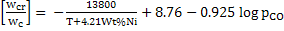 Equations 4and 5 describes distribution ratio of Cr and c in Fe-Ni –Cr-C melt. Table shows the influence of temperature and pCO on the distribution ratio without Ni and in the presence of 10Wt % Ni