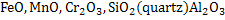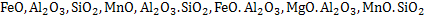 with a mixture of iron, manganese, chromium, aluminum and tungsten oxides and also crystalline silicates.