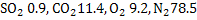 c) Volume of gases (dry), calculated from sulphur and carbon content,