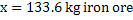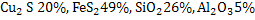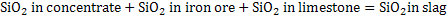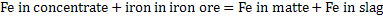 . The concentrate is smelted in a furnace in presence of iron ore and limestone. The analysis of iron ore is and and that of limestone is and . The grade of matte is and the ratio of in slag is . The oil amounts to 12%%of the charge and analyzes 85% carbon and 15% hydrogen. The air used is 10% excess than theoretical required for smelting