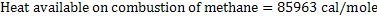 Each mole of methane produces of heat on combustion. Out of which some amount of heat will be carried away by the products of combustion of methane at the furnace temperature and is assumed to be 1500K. The products of combustion are when methane is burnt with stoichimetric amount of air.