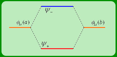 As shown in figure 27.1, the ground state of two hydrogen atomic orbitals split into two energy levels – bonding and anitibonding . |