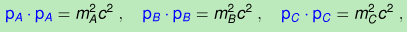 Thus the scalar product can be written in terms of the particle masses. The same is true of the other two scalar products.