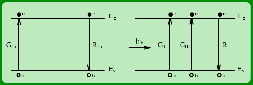 In a direct band gap semiconductor, the thermal agitation breaks the bonds between neighboring atoms creating electron-hole (e-h) pairs. This thermally generated process of creating carriers is represented by the rate (usually expressed as the number of e-h pairs generated per cm3 per sec).