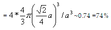 | Packing fraction= (no. of spheres per cell) * (volume of a sphere) / (volume of the unit cell) |