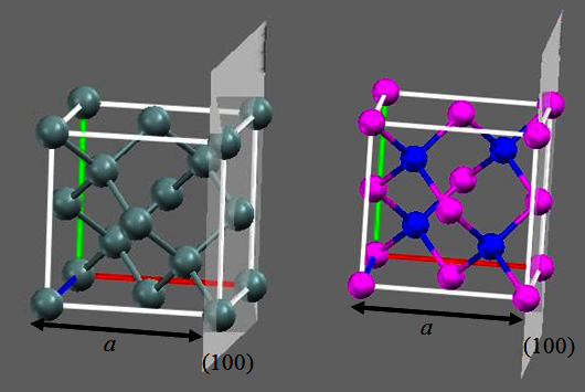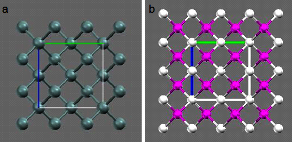 (b) Zinc-blende structure of GaAs and InP (Blue represents Ga/As and pink for As/Ga respectively) |