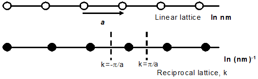 | Fig.2.3. Linear and reciprocal lattice in one dimension. The basic dimension of linear lattice