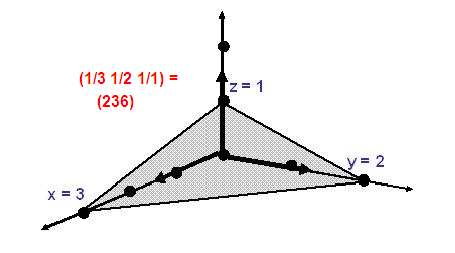 Atoms are arranged in 3D space and say the intercepts for the respective axes are 3, 2 and 1. The reciprocal of the intercepts is therefore (1⁄3 ,1⁄2 , 1⁄1), by multiplying with the common denominator (which 6) we obtain (2, 3, 6). This means the plane in the figure (2.6) represent the lattice plane referred to (2, 3, 6). These integers are well known as Miller indices and are generally represented as (h,k,l). Miller indices of important planes of a cubic cell are given given in figure 2.7, |