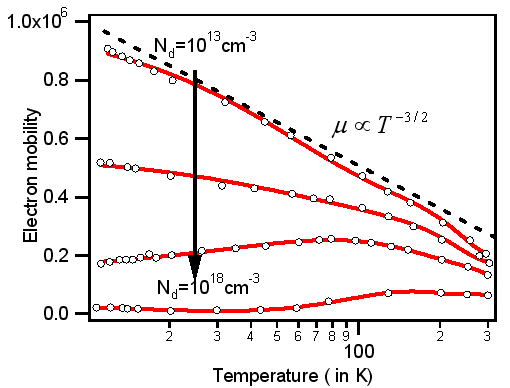 concentrations of dopant. Here you observe the impact of lattice ( T-3/2 ) and impurity (T3/2) Scattering dependence. |