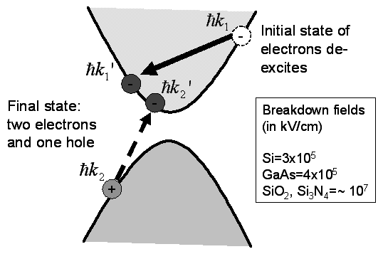 Fig2.44: Impact ionisation process in semiconductors. Carrier multiplication