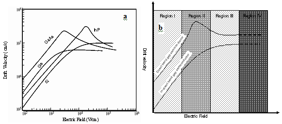Fig2.41: (a) Drift velocity -Electric field response of semiconductors
